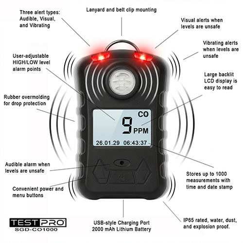 Quick view TESTPRO low-level CO Detector for camping, travel, RV, hotel stays, cars, boats & more. 7-day battery + car charger included, calibrated in USA The TESTPRO COP-1000 is our latest and most affordable CO detector. Designed for portability and ease of use, this durable and rechargeable CO detector will keep you safe from CO poisoning no matter where you go! Use it in your car, RV, boat, camping -... MSRP: Now: $49.00 Add to Cart Compare Quick view Sensorcon Carbon Monoxide Tester Analyzer Kit for the CO Meters Upgrade your Carbon Monoxide Inspector from a simple Carbon Monoxide meter to a CO analyzer with this inexpensive accessory kit! Includes a hand aspirated pump with inline filter, and a handy carrying case. **Carbon Monoxide Detector is not included and... MSRP: Now: $69.00 Compare Quick view TESTPRO Carbon Monoxide personal monitor, adjustable alarm points, 3 alarm modes, datalogging, home & car chargers included The TESTPRO SGD-CO1000 Carbon Monoxide personal monitor uses electrochemical CO sensing technology to ensure fast, reliable measurements up to 1,000 ppm. The built-in audible, visual, and vibrating alarms immediately alert the user when unsafe conditions... MSRP: Now: $79.00 Choose Options Compare Quick view Defender CA6150 10-Year Carbon Monoxide Alarm (with digital display) DEFENDER CA6150 10-YEAR CARBON MONOXIDE ALARMThe Defender CA6150 is an advanced, professional quality, sealed 10-year lithium battery powered carbon monoxide (CO) alarm with large, alpha-numeric digital display. Read and monitor current and peak CO... MSRP: Now: $99.95 Add to Cart Compare Quick view Sensorcon Inspector Carbon Monoxide Detector & CO Meter - INS-CO-01 * BULK PRICING AVAILABLE * The Sensorcon Inspector is the perfect tool for detecting carbon monoxide hazards in nearly any environment. The Inspector is a rugged and professional grade instrument for HVAC Service Technicians, Home Inspectors, Fire... MSRP: Now: $154.00 Add to Cart Compare Quick view Sensorcon AV8 Inspector CO Detector for Aviation - AV8-CO-01 * BULK PRICING AVAILABLE * The Sensorcon AV8 Inspector is a portable, professional-grade Carbon Monoxide monitor designed for aviation enthusiasts and professionals including pilots, ground crew, technicians and inspectors. In aviation, CO is commonly... MSRP: Now: $164.00 Add to Cart Compare Quick view Sensorcon Inspector: Intrinsically Safe Carbon Monoxide Detector & CO Meter * BULK PRICING AVAILABLE * The Carbon Monoxide Inspector Industrial - The Best Intrinsically Safe Portable Carbon Monoxide Detector (CO Meter) Available.Certified Intrinsically Safe to UL913 for Class I & II explosive hazardous environments. This is... MSRP: Now: $174.00 Add to Cart Compare Quick view Sensorcon Inspector Industrial Pro (CO) Carbon Monoxide Detector Meter - INS-CO-IND-PRO * BULK PRICING AVAILABLE * Industrial Pro Carbon Monoxide DetectorA wearable, programmable real time display carbon monoxide detector for the modern work force. Set your own alarm points to meet your specific industry needs!The Sensorcon Industrial Pro... MSRP: Now: $184.00 Add to Cart Compare SALE Quick view CO Experts Model 2016 Low Level Carbon Monoxide Monitor - 2016-10 The CO EXPERTS model 2016 is considered by many one of the industries’ best Low-Level Carbon Monoxide Health monitors available to the consumer today. Its unique style allows for either wall mounting or portable use with the included free-standing... MSRP: Was: $199.00 Now: $189.95 Add to Cart Compare Quick view Sensorcon AV8 Inspector Pro Carbon Monoxide Monitor for Aviation - AV8-CO-03 * BULK PRICING AVAILABLE * The Sensorcon AV8 Inspector Pro is a portable, professional-grade Carbon Monoxide monitor designed for aviation enthusiasts and professionals including pilots, ground crew, technicians and inspectors. In aviation, CO is... MSRP: Now: $194.00 Add to Cart Compare Quick view Defender Low Level CO (Carbon Monoxide) Monitor - LL6270 (replaces LL6170) Defender LL6170 Manual **REPLACED BY NEW MODEL 6270** Defender LL6170 Quick Start Guide **FREE 2-DAY DELIVERY FOR A LIMITED TIME!** **LL6170 REPLACED BY NEW MODEL 6270** The Defender LL6170 is a professional quality, sealed lithium battery... MSRP: Now: $199.95 Add to Cart Compare Quick view CO Experts Model PG-2017-5 Ultra Low Level Carbon Monoxide Health Monitor - PG-2017-5 The CO EXPERTS Ultra model PG-2017 is designed to offer “real-time” monitoring of Low levels of Carbon Monoxide for those with heightened heath concerns. This unit starts to display readings at 5 PPM, and is available with the first audible... MSRP: Now: $209.00 Compare 1 2 Next 1 2 Next Compare Selected × OK